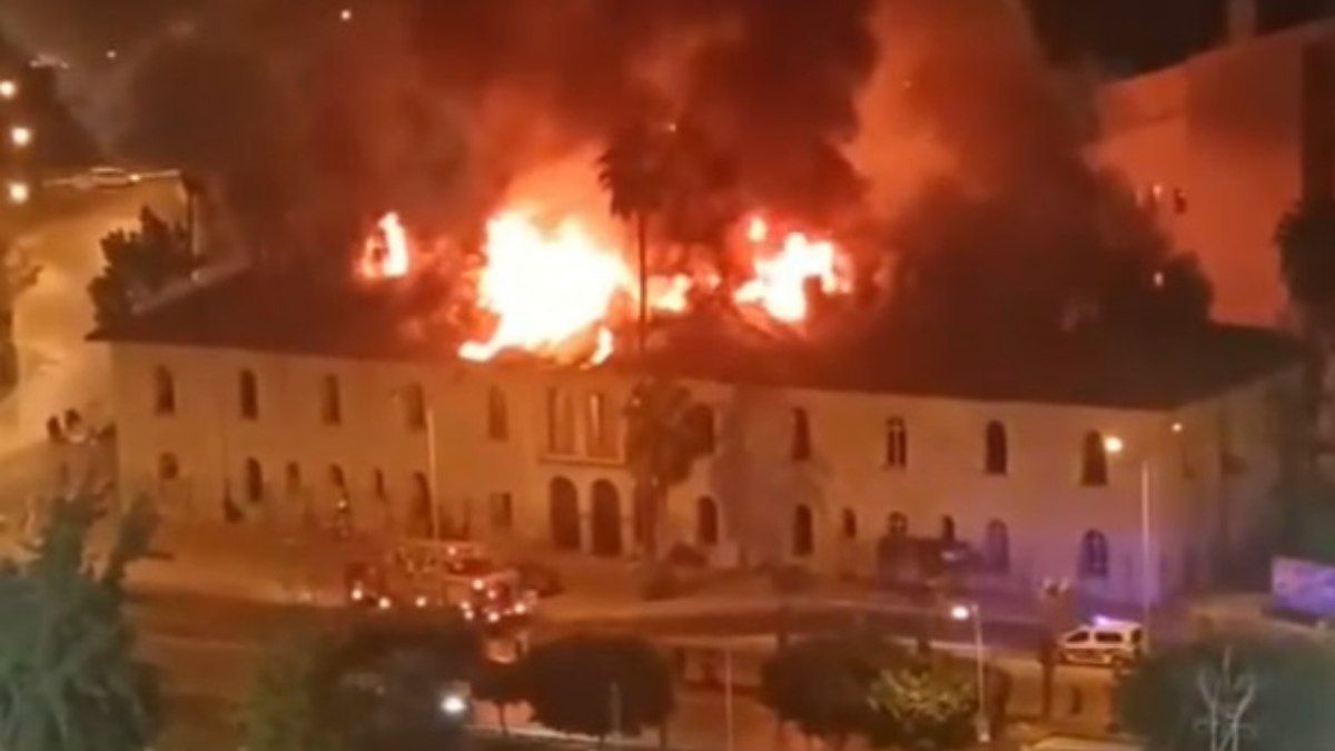 Tarihi Halk Kütüphanesinde çıkan yangın kısa sürede büyürken, yangını söndürmek üzere bölgeye çok sayıda itfaiye ekibi sevk edildi.