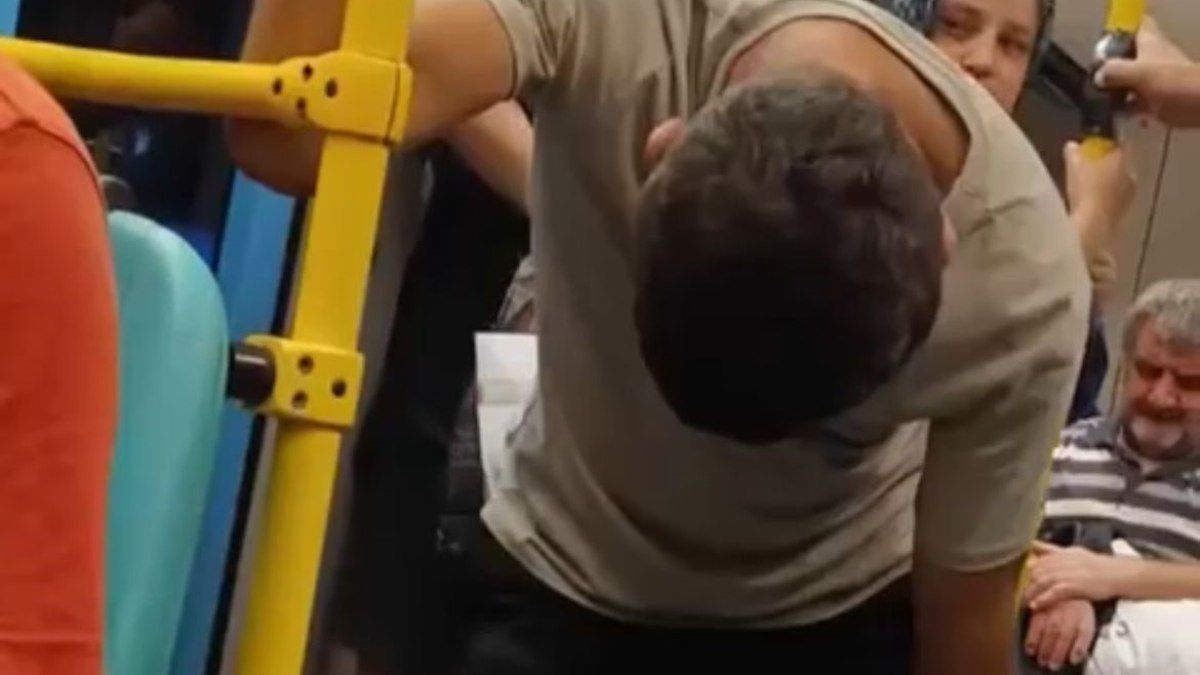 Uyuşturucu madde etkisindeki bir kişi metroya bindi. Metro içinde kendinden geçen şahıs vatandaşlara tedirgin anlar yaşattı.