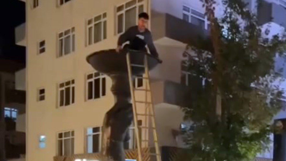 İstanbul’da iddia için heykele çıktı: Mahsur kaldı