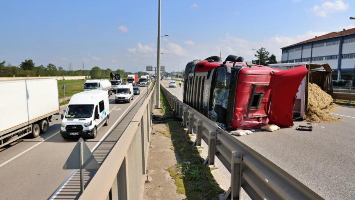 Tekkeköy ilçesinde arı sokması sonucu dikkati dağılan şoförün kullandığı tır yola devrildi. Kazada tır sürücüsü yaralandı.