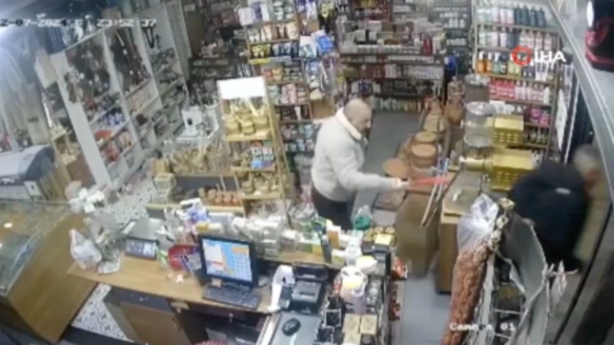 İstanbul Esenyurt’ta bir aktardan parfüm çalan adam, iş yeri sahibinin beyzbol sopalı müdahalesiyle karşılaştı. Aldığı darbelerle neye uğradığını şaşıran hırsız…
