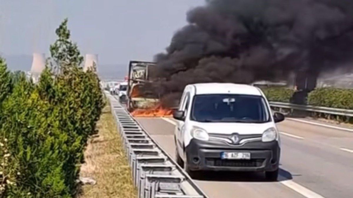 Bursa’da seyir halindeki kamyonette yangın çıktı