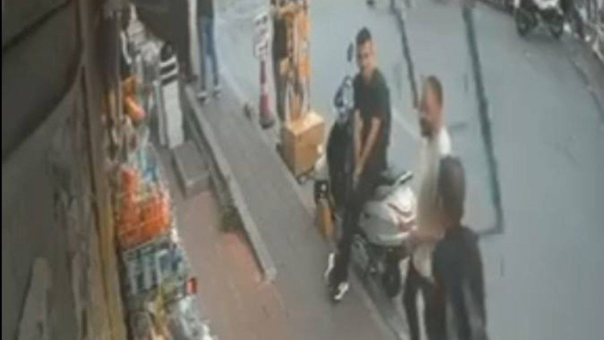 Fatih'te kaldırım üzerinde arkadaşları ile konuşan bir kişinin üzerine cam çerçeve düştü. O anlar güvenlik kamerasına yansıdı.