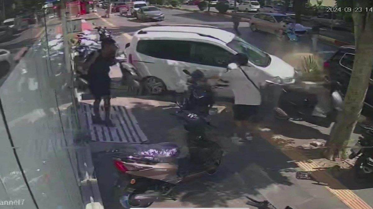 Yaya geçidindeki yayalara yol vermek amacıyla duran araca çarpmamak için direksiyonunu kıran ve az kalsın vatandaşları ezecek olan sürücünün kaza…