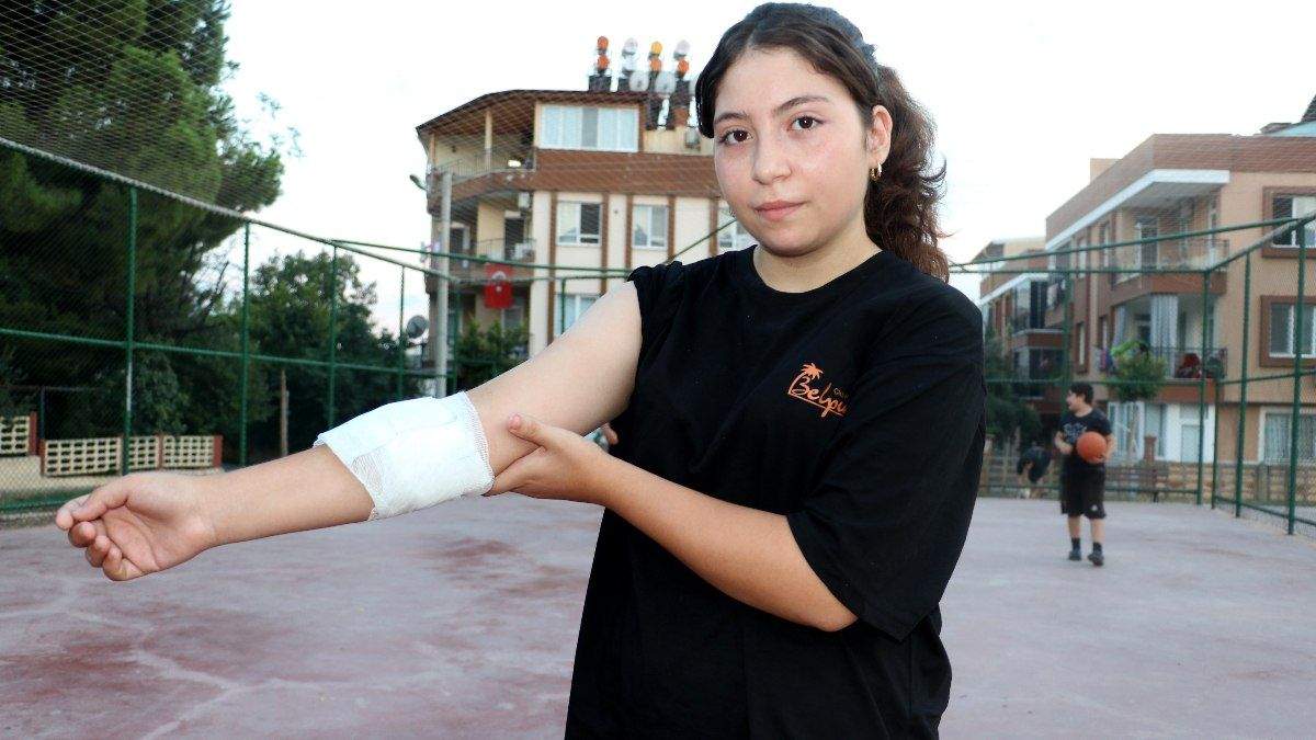 12 yaşındaki Meltem Deniz, basketbol sahasının dışına kaçan topunu almaya çalışırken kolunu saha etrafındaki dikenli tellere çarptı.