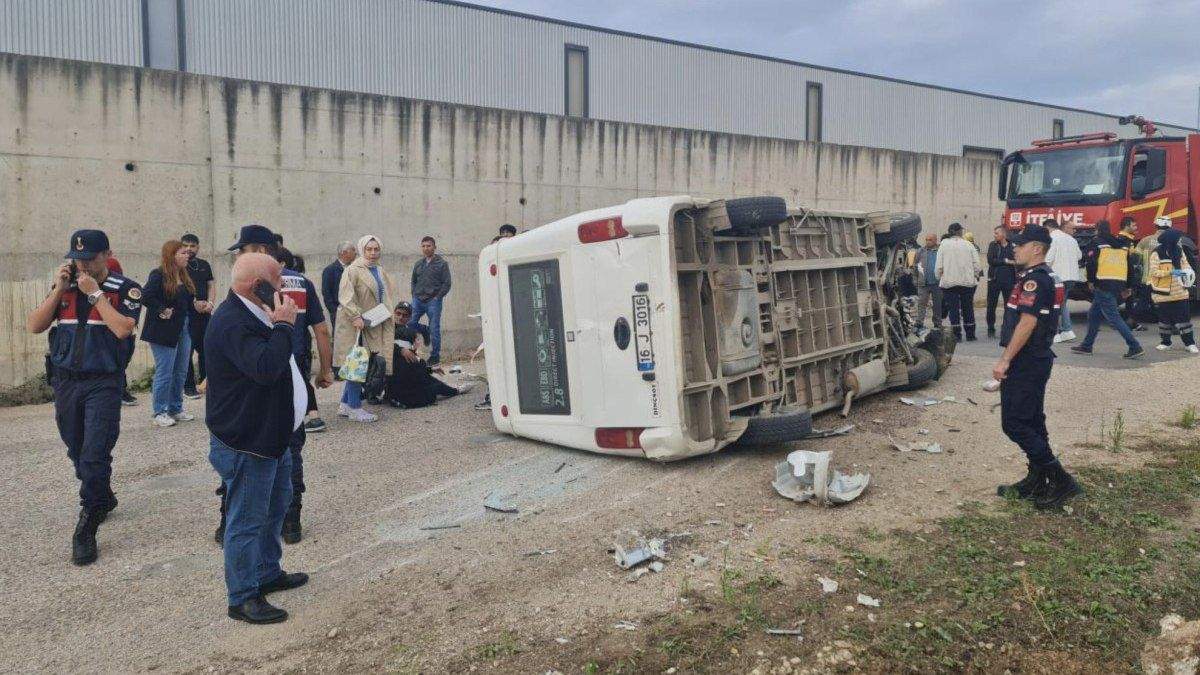 Bursa’da işçi servisi minibüsü devrildi: 13 yaralı