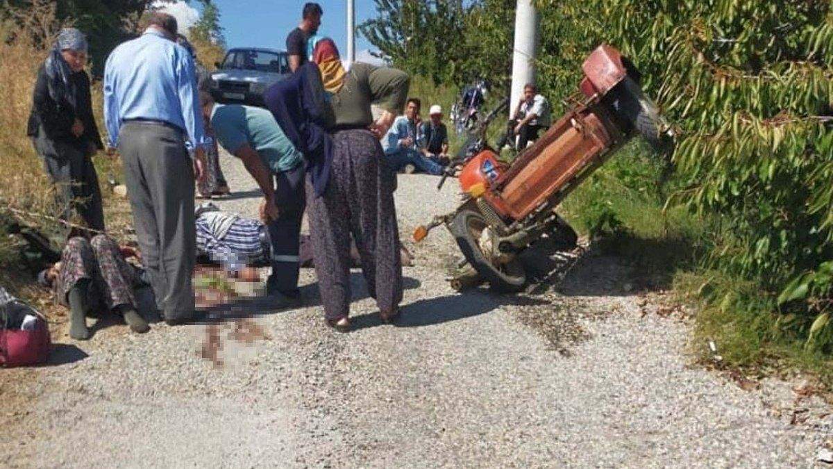 Manisa’da sepetli motosiklet şarampole devrildi