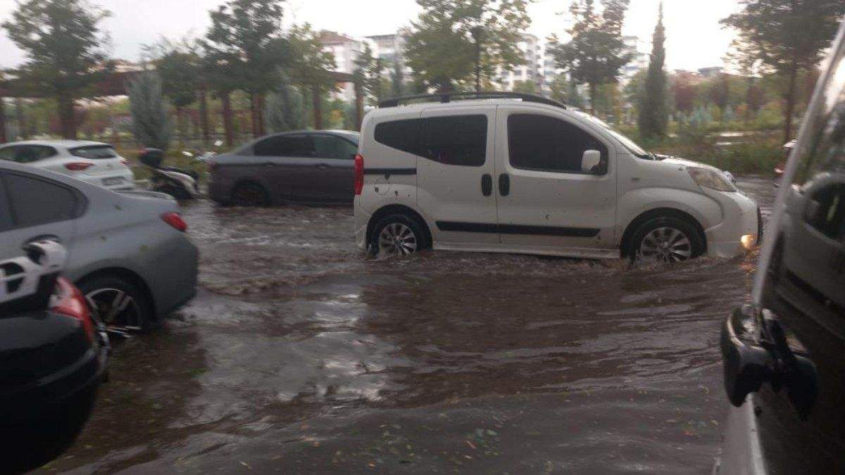 Diyarbakır'da etkili olan kuvvetli fırtına, sağanak ve dolu yağışı hayatı olumsuz etkilerken, bazı bölgelerde caddeler su altında kaldı.