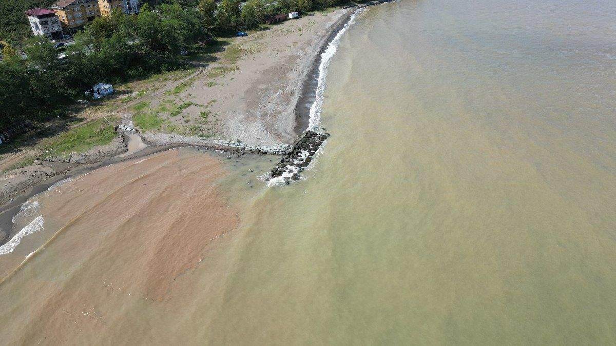 İlçelerde etkili olan sağanak sonrası derelerden akan çamurlu su, denizin rengini değiştirdi.