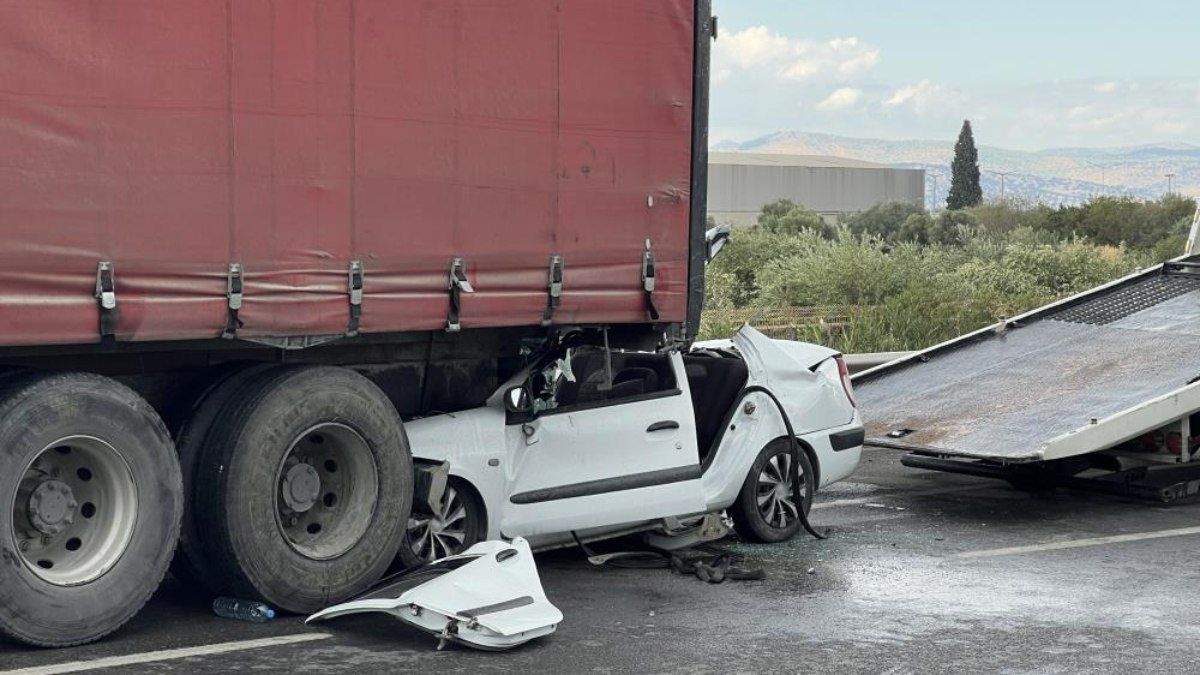 Manisa’da sürücüsünün kontrolünden çıkan otomobil, seyir halindeki kamyona arkadan çarptı. Hurdaya dönen otomobilden sağ olarak çıkan sürücü hastaneye kaldırıldı.