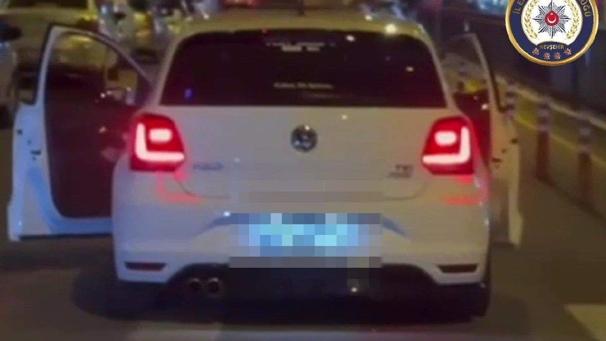Nevşehir’de sürücü trafikte aracının kapılarını açarak ilerledi