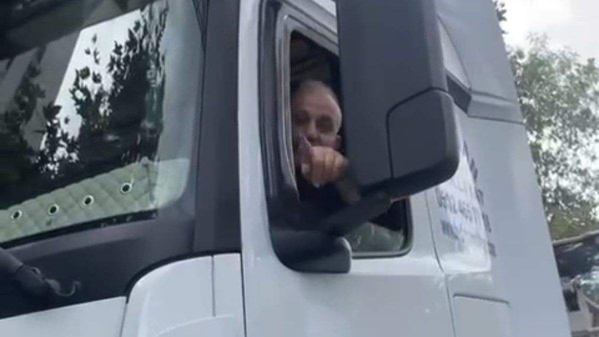 Kadıköy'de otomobil sürücüsüyle tırı şoförü arasında yol verme tartışması, diğer sürücüler tarafından cep telefonuyla kaydedildi.