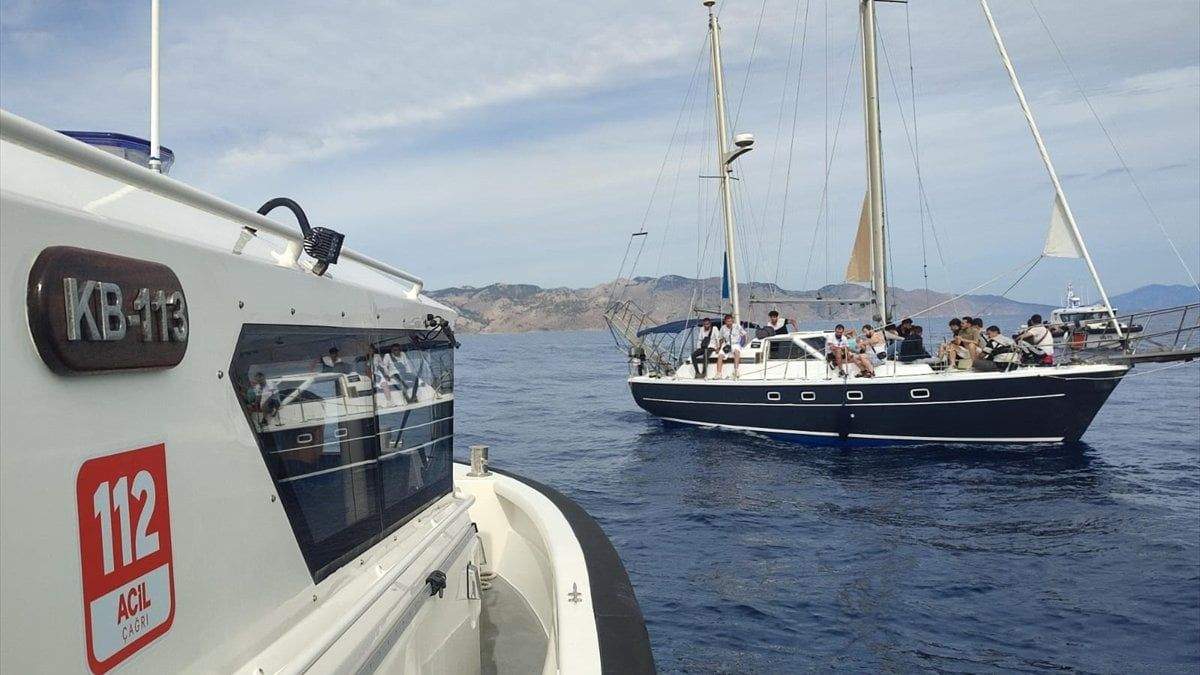 Muğla’da motoru arızalanan yelkenlideki 72 kaçak göçmen kurtarıldı