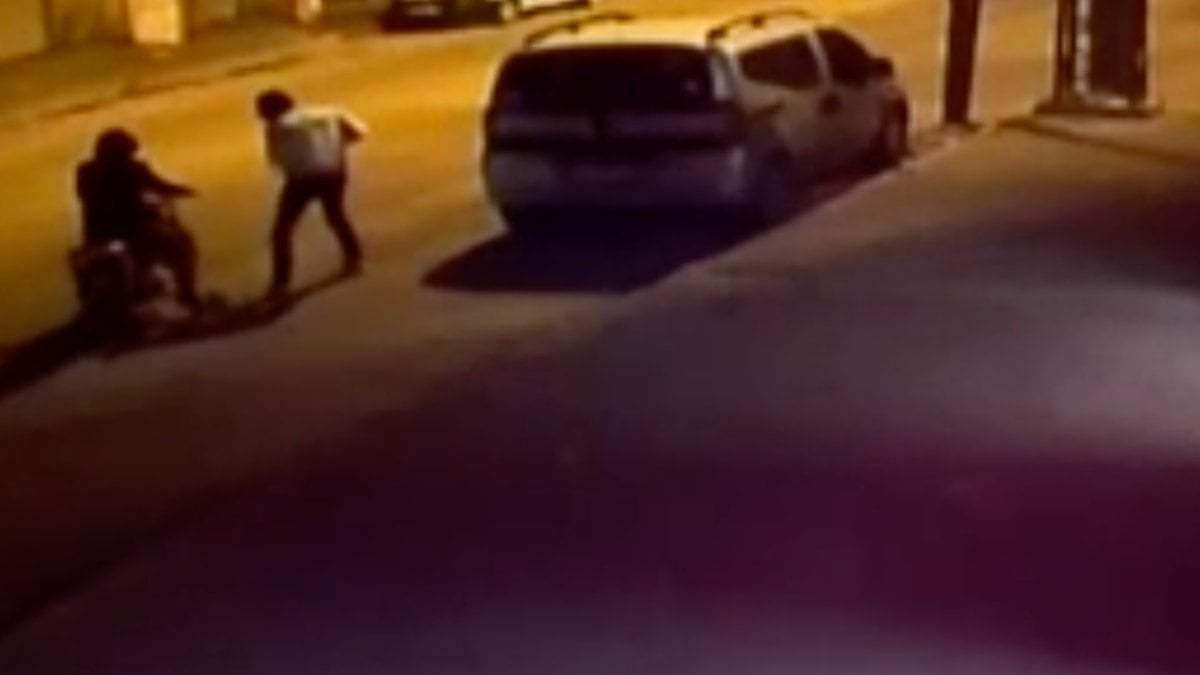 Yıldırım ilçesinde alkollü olduğu öğrenilen bir gencin dakikalarca demir bir direkle kavga ettiği anlar çevredekilerin kamera kayıtlarına yansıdı.
