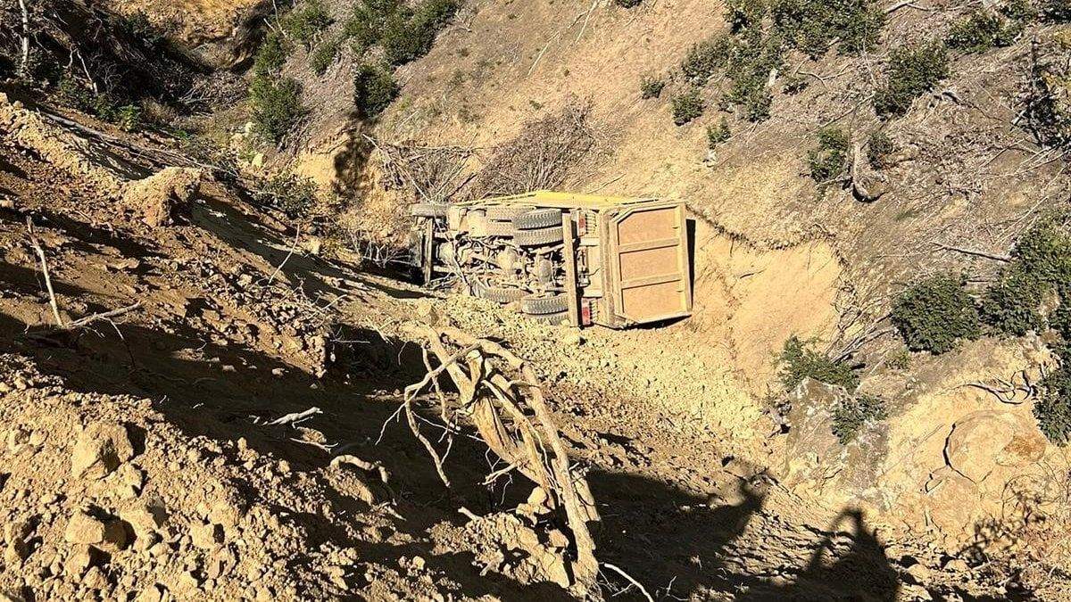 Tokat’ta toprak yüklü kamyon 25 metre yükseklikten uçuruma yuvarlandı
