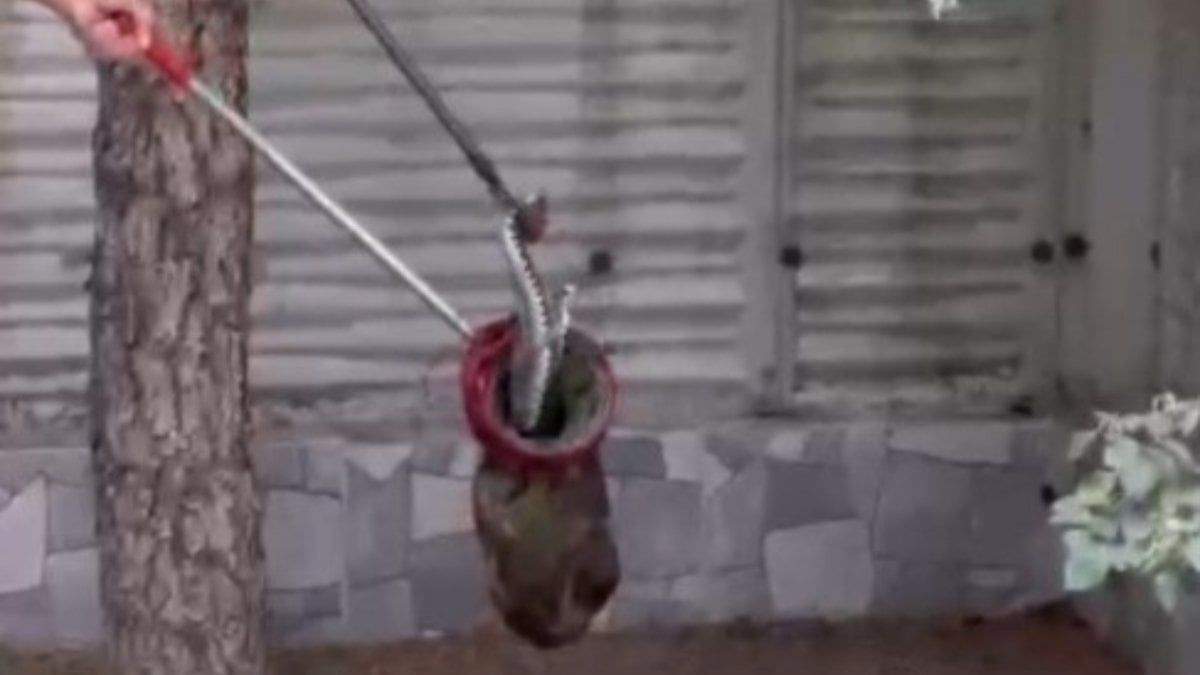 Bolu’da evin bahçesinde duvara sıkışan yılan kurtarıldı