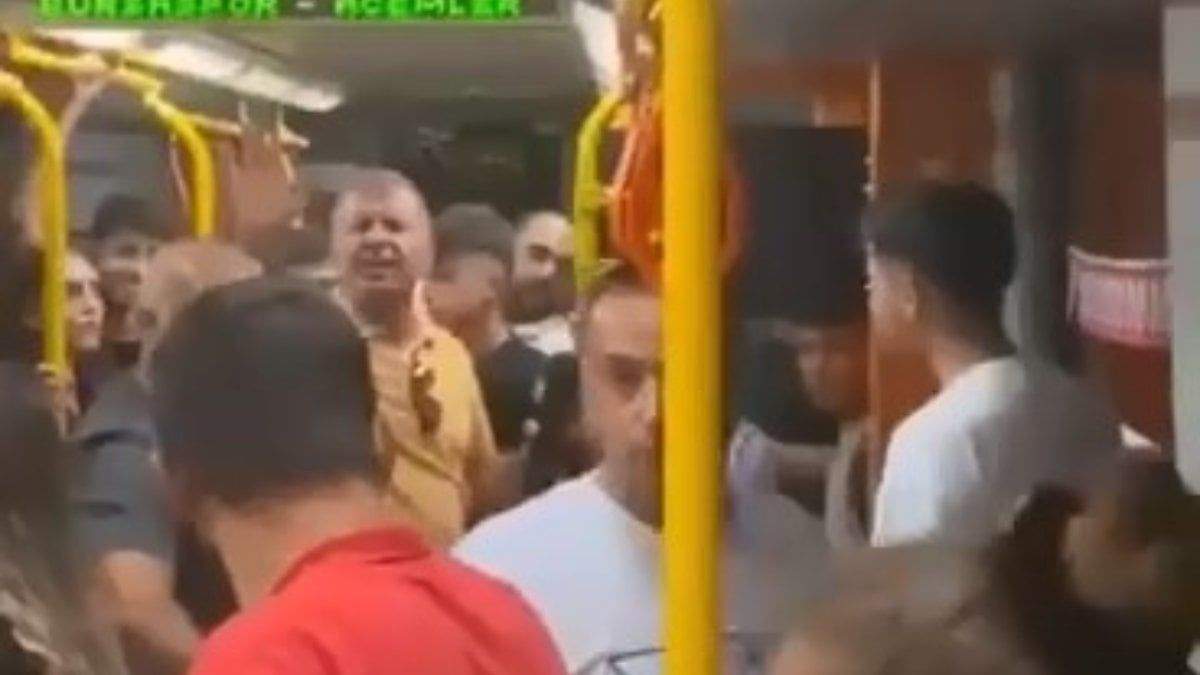 Osmangazi ilçesinde Bursa metrosunda yolcular arasında yer verme kavgası kameraya yansıdı.