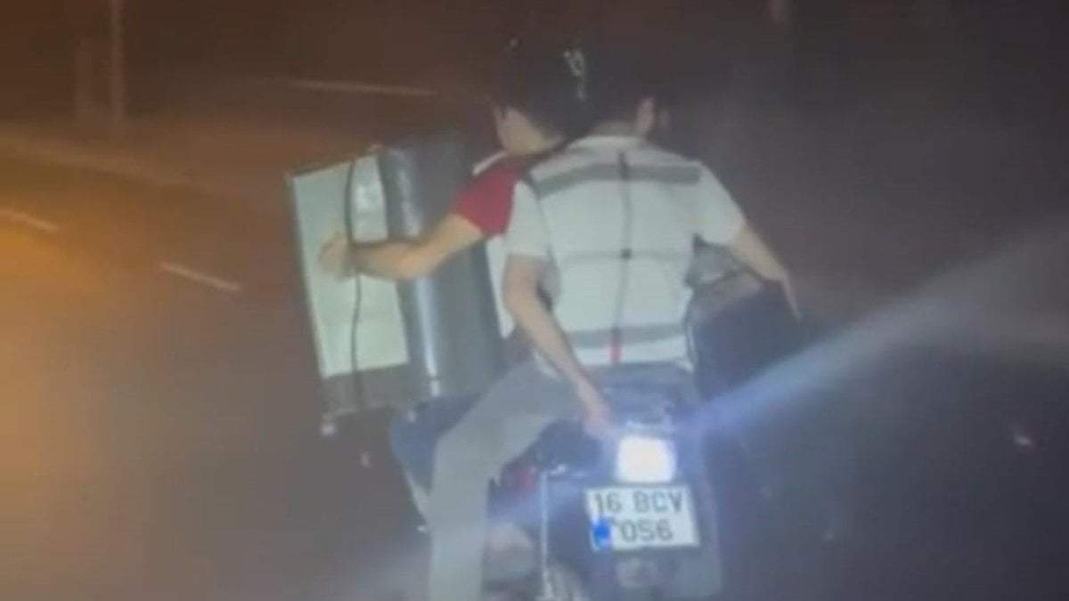 Osmangazi'de seyir halindeki bir motosikletin üzerine 3 kişi binip bir de yük taşıyan 3 kişinin tehlikeli yolculuğu, bir vatandaş tarafından…