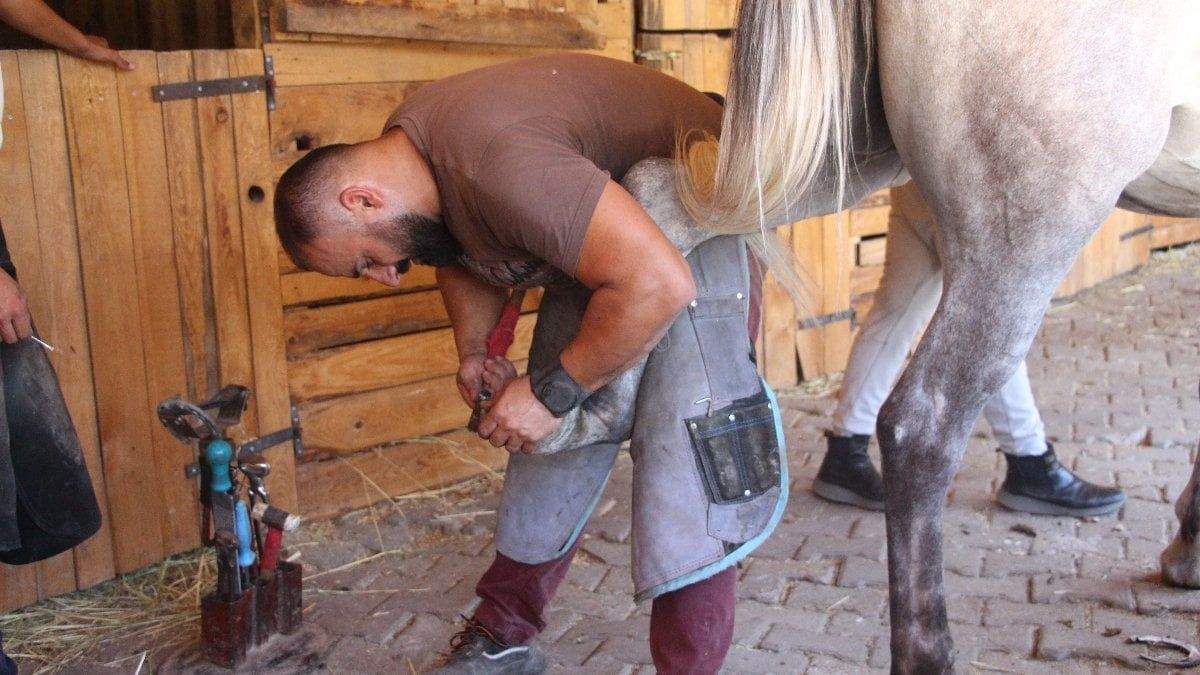 Boş zamanlarında nalbantlık yapan Özkan Yeşilçay; Bolu, Karabük, Düzce, Kastamonu ile İstanbul, Ankara, Eskişehir ve Bilecik’te at nalı çakıyor.