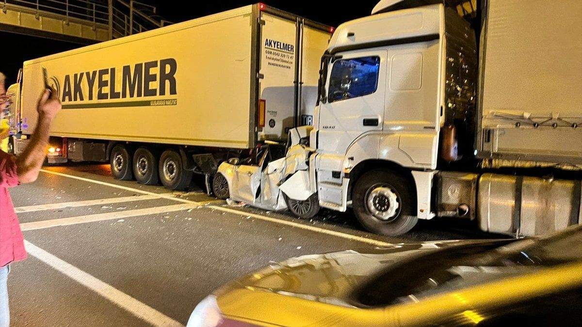 Erzurum’da tırların arasında sıkışan otomobildeki 2 kişi sağ kurtuldu