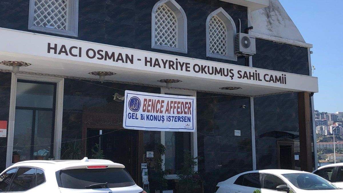 Gemlik ilçesinde Sahil Camii'nin girişine asılan "Bence affeder, gel bir konuş istersen" yazılı afiş büyük ilgi gördü.