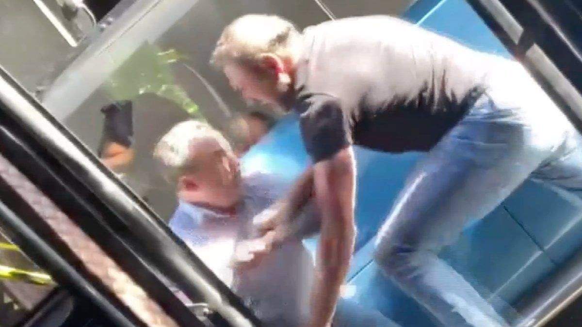 Ankara'da aynı güzergahta çalışan minibüs şoförleri arasında çıkan kavgayı bir yolcu cep telefonuyla görüntüledi.