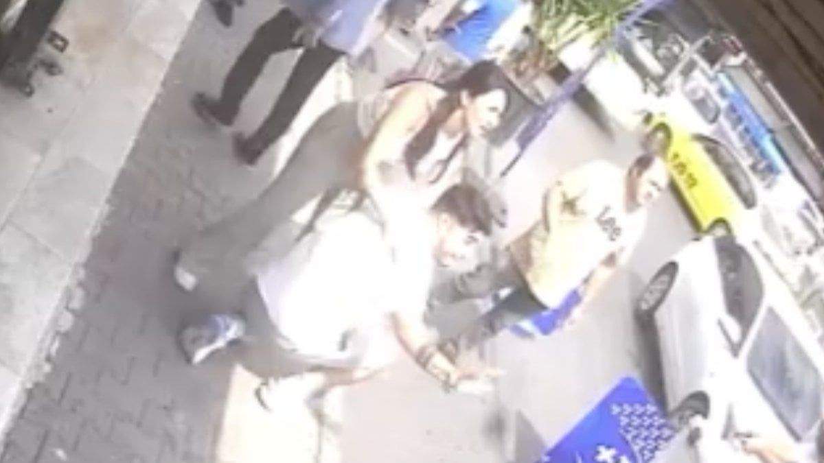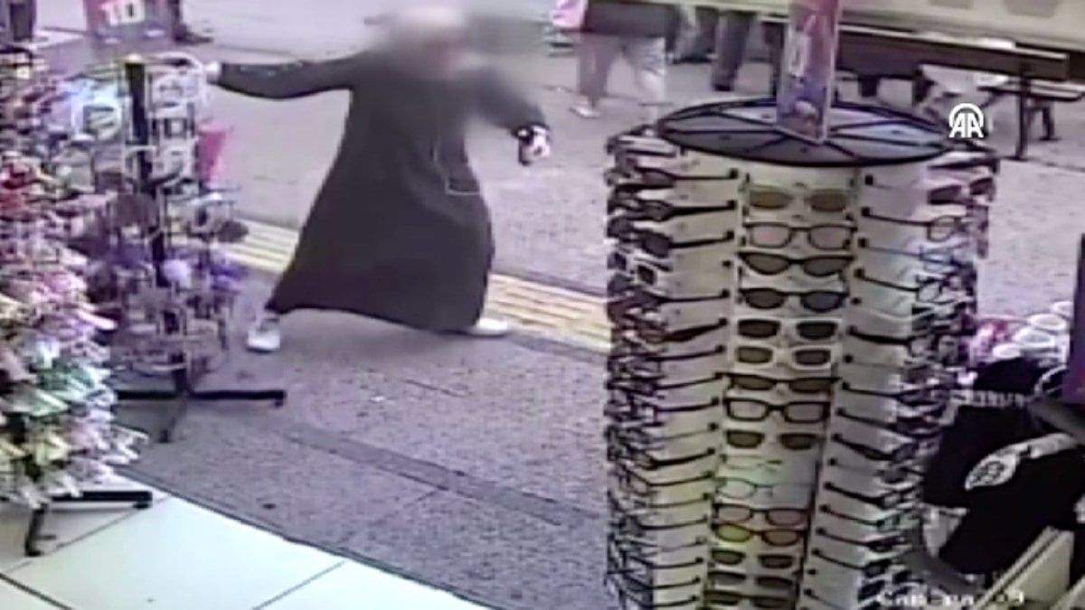 Akdeniz ilçesinde bir kadının, cadde üzerinde koşarak iş yerlerindeki stant ve tezgahları dağıtarak kaçması güvenlik kamerasınca görüntülendi.