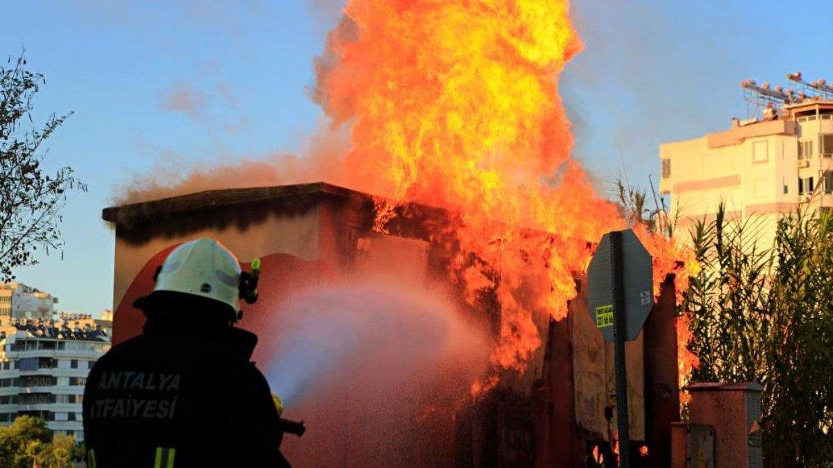 Antalya'da park içerisinde bulunan trafoda başlayan yangın kısa sürede büyüdü.