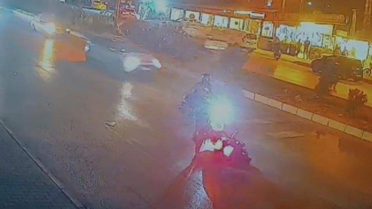 Araçtan yağ akan yolda ilerleyen motosiklet sürücülerinin kazayla burun buruna geldiği anlar, güvenlik kamera görüntülerine yansıdı.
