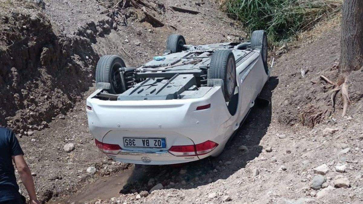 Adıyaman’da otomobil dere yatağına yuvarlandı