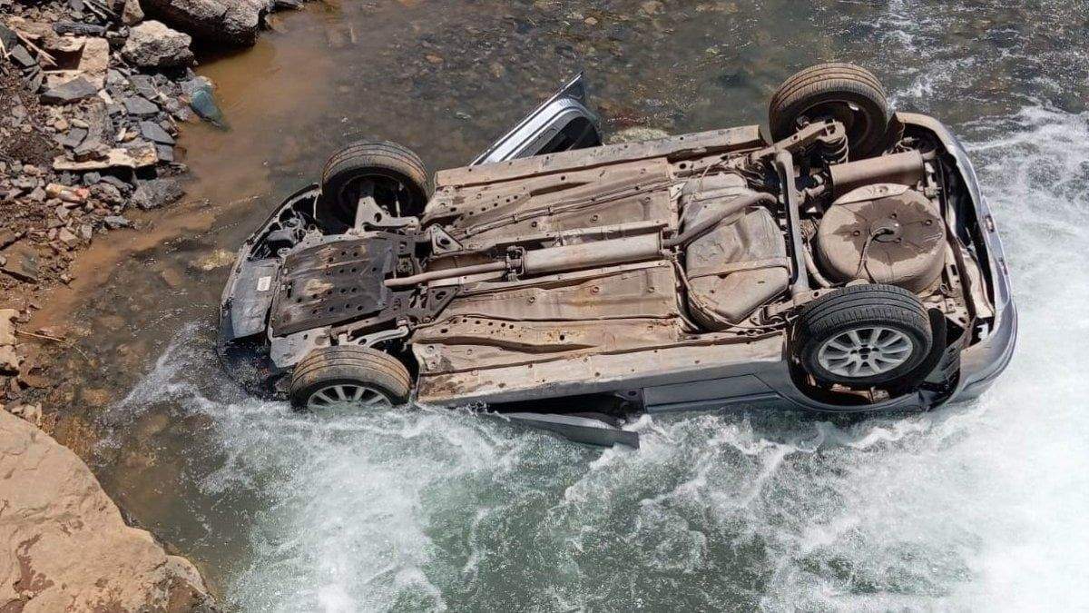 Hakkari'de dereye uçan ve ters dönen otomobildeki 3 kişi, yara almadan kurtuldu.