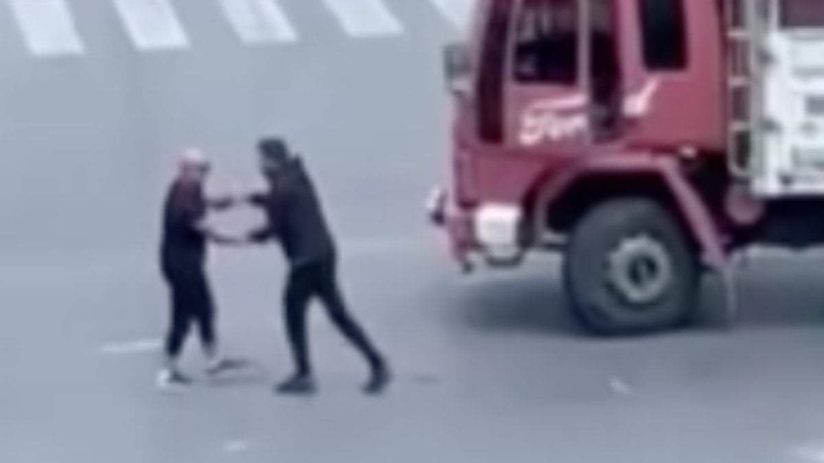 Büyükçekmece'de kazaya karışan motosikletli sürücünün, kazadan sorumlu tuttuğu kamyon şoförüne kaskıyla vurduğu anlar vatandaşlar tarafından kaydedildi.