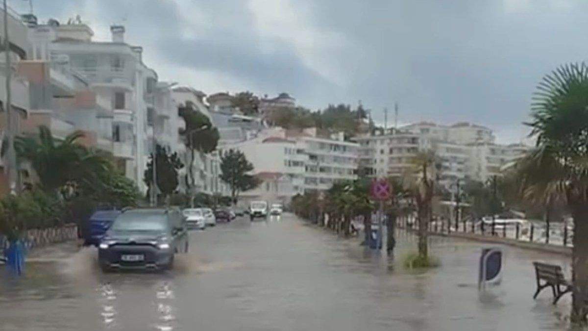 Mudanya ilçesinde etkili olan sağanak, sahil yolunu göle çevirirken, sürücüler zor anlar yaşadı.