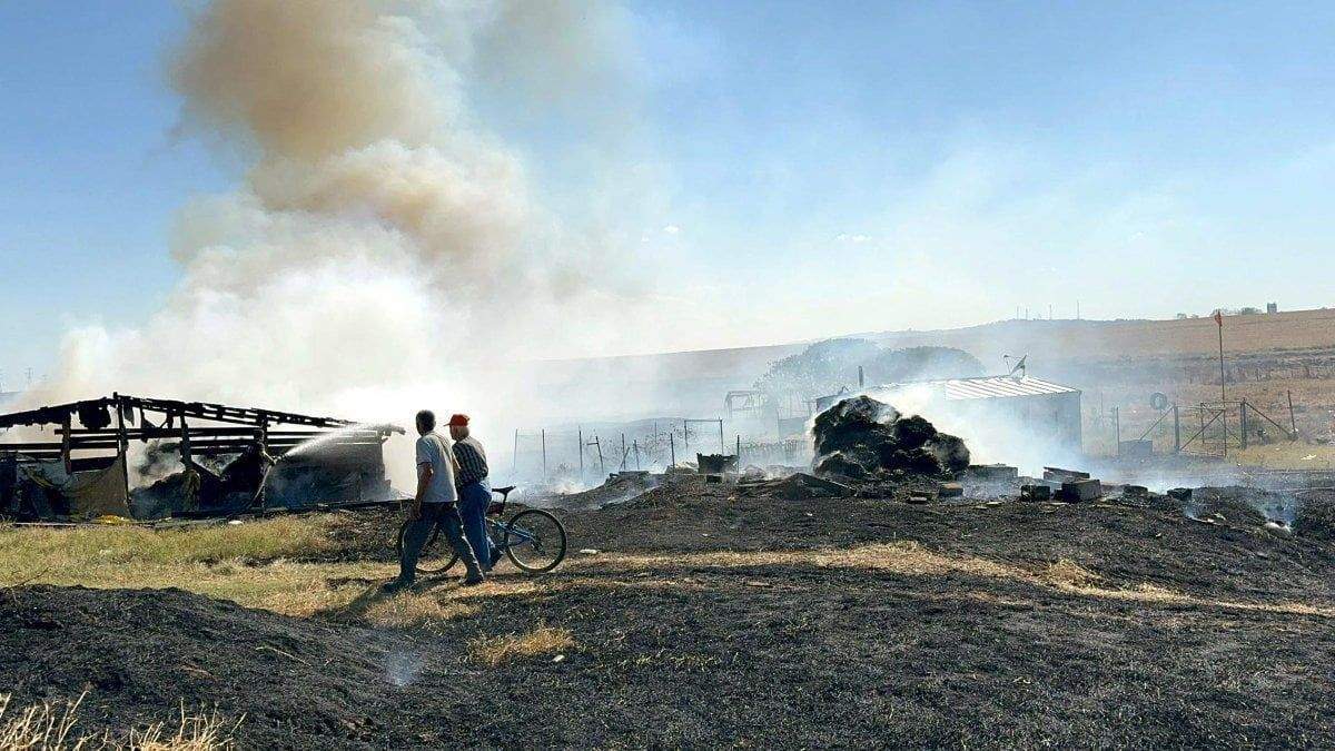 Çorlu ilçesinde bulunan bir çiftlikte çıkan yangında, alevlerin sıçradığı yaklaşık 500 dönüm tarım arazisi yandı.