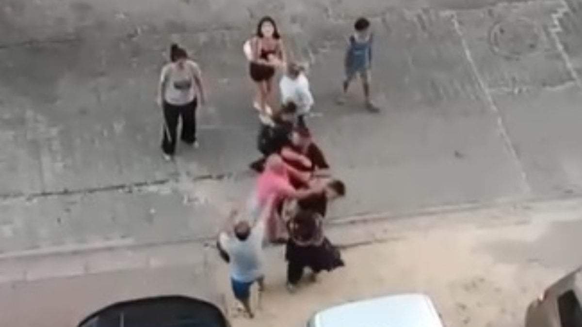 Kentte yoldan geçen bir kişinin 16 yaşındaki çocuğu darbettiği anlar, saniye saniye görüntülendi.