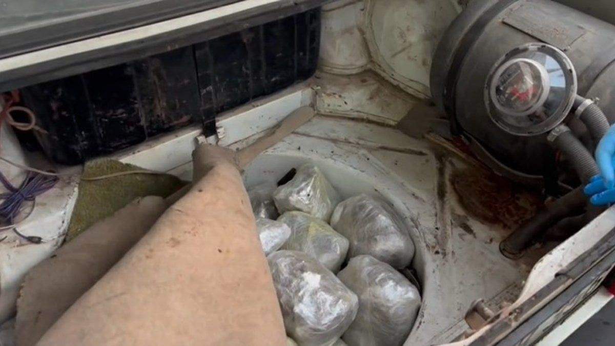 Hatay'da polis ekipleri tarafından narkotik köpeğiyle gerçekleştirilen operasyonda, çekiciyle taşınan Tofaş marka aracın bagajında 8 kilo 865 gram skunk ele…