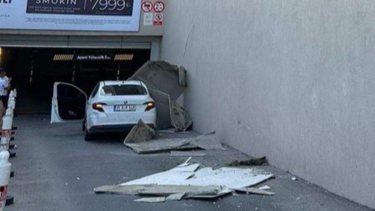 İzmir'de bulunan bir alışveriş merkezinin otopark girişinin üzerinde bulunan tavan kalıbı bir otomobilin üzerine düştü. Olayda şans eseri yaralanan olmadı.