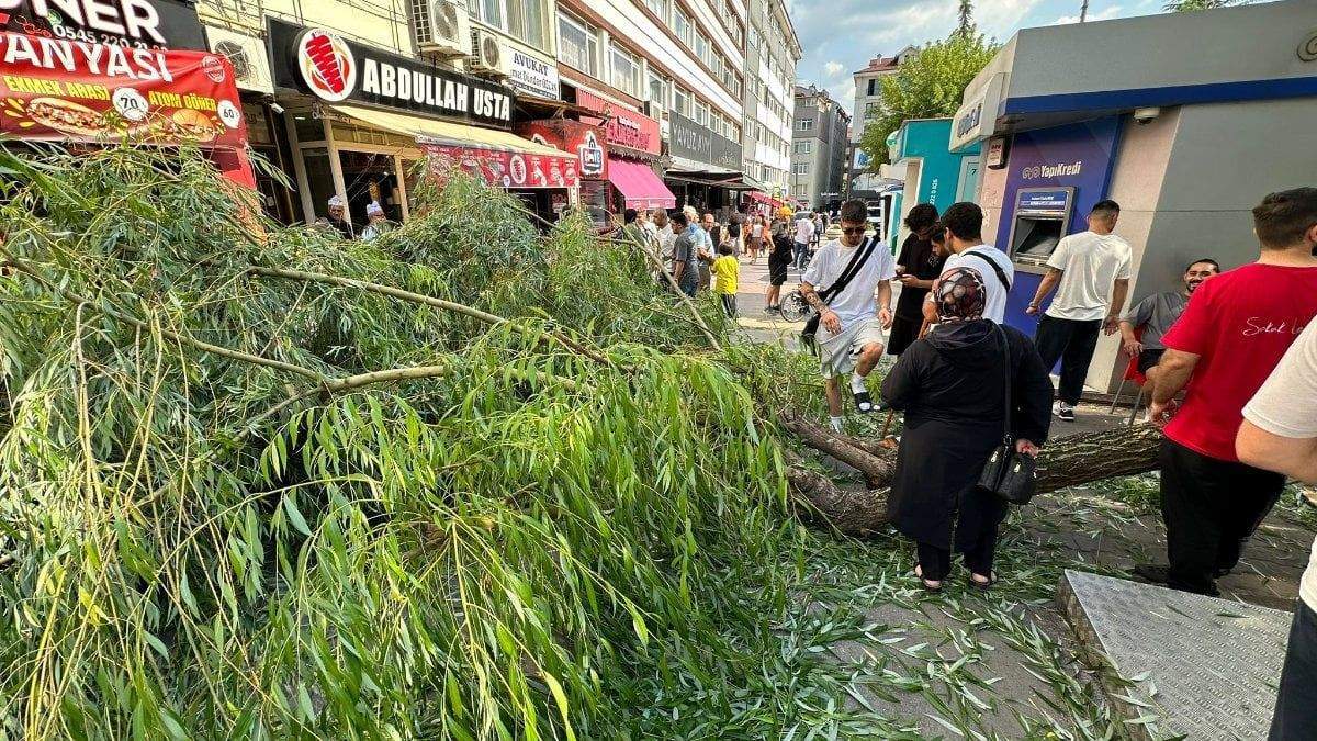 Valilik Konağı’nın yan sokağında dallarının ağır geldiği ağaç, yaya yoluna devrilirken, ağacın dallarının çarptığı bir kişi hafif yaralandı.