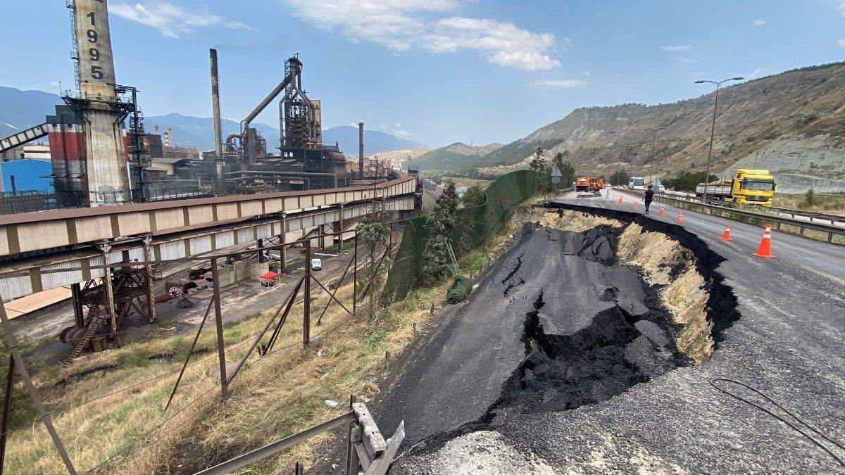 Karabük’te yol çöktü, ulaşım durdu