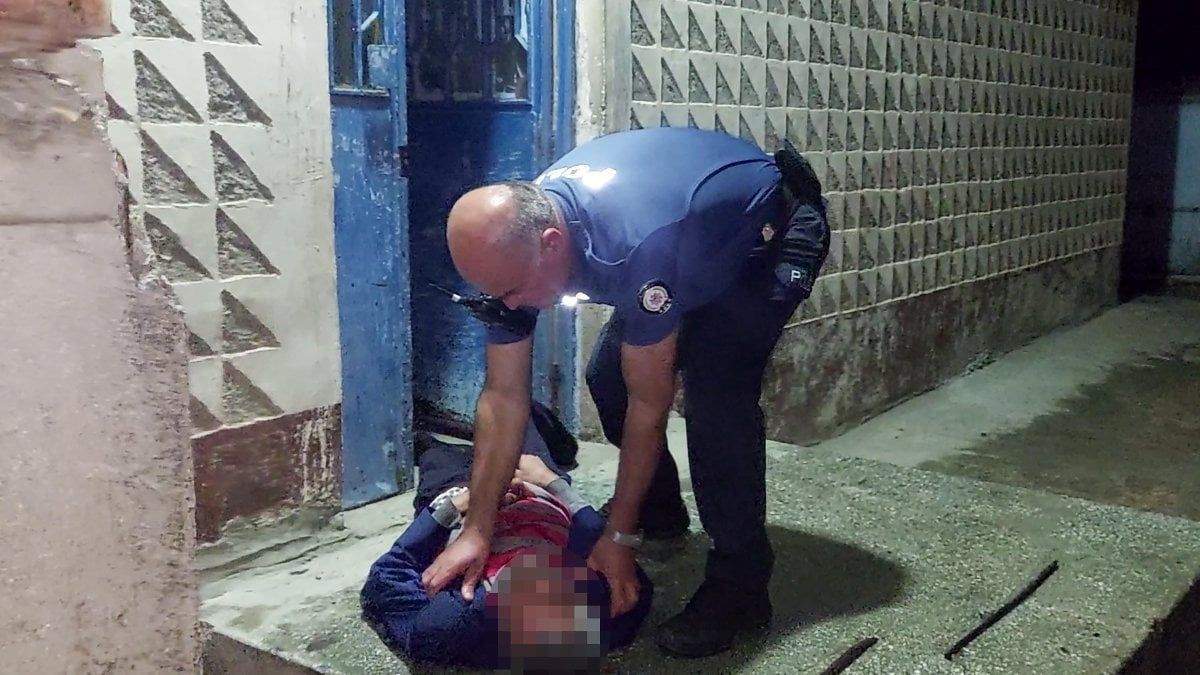 'Cadde ortasında yatan bir kişi var' ihbarına giden polis ekipleri, alkollü olduğu belirlenen S.Y.'yi evine götürebilmek için uzun süre uğraştı.