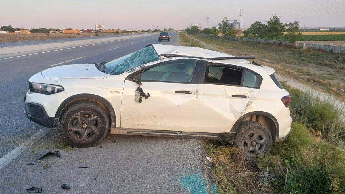 Burdur’da birbirine çarpan iki araç şarampole devrildi
