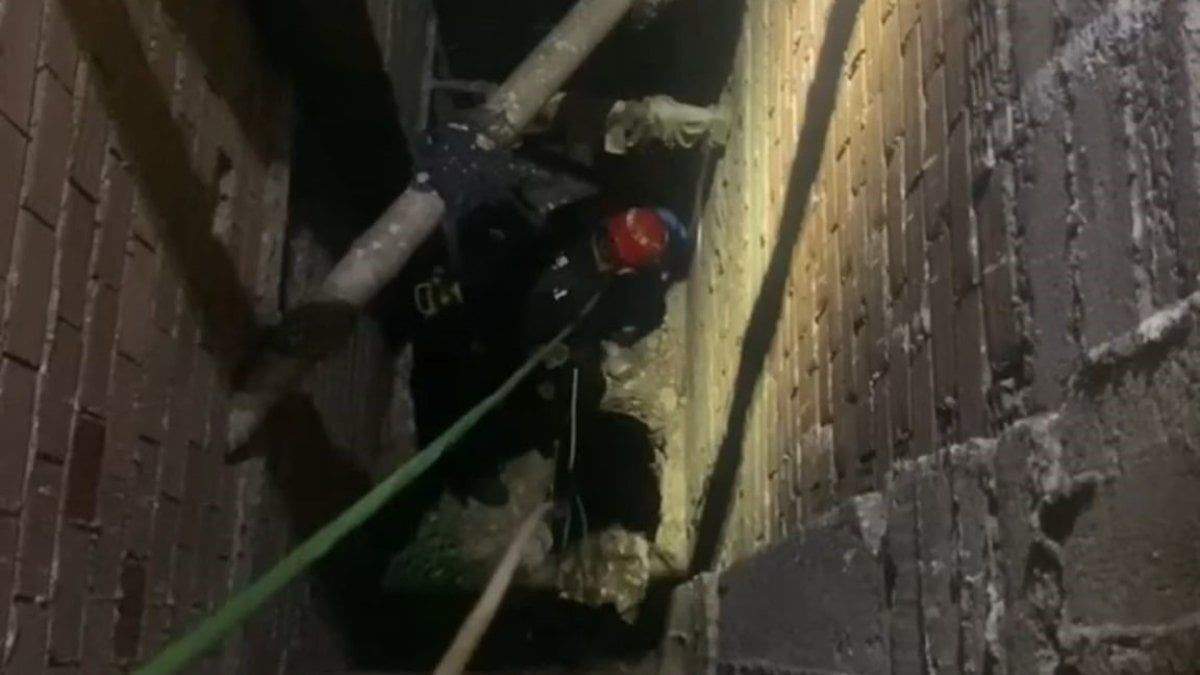 Bursa'da havalandırma boşluğuna düşen kediyi itfaiye ekipleri kurtarırken, kurtarma operasyonu kameraya yansıdı.
