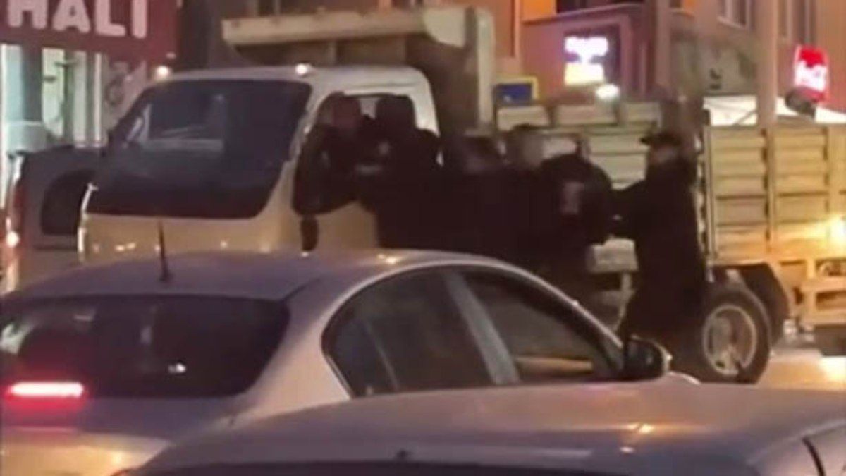 Vatandaşlar tarafından kayda alınan görüntülerde, kamyon sürücüsü ile trafikte seyir eden otomobil sürücüsü arasında yaşanan tartışmanın kısa sürede kavgaya dönüştüğü…