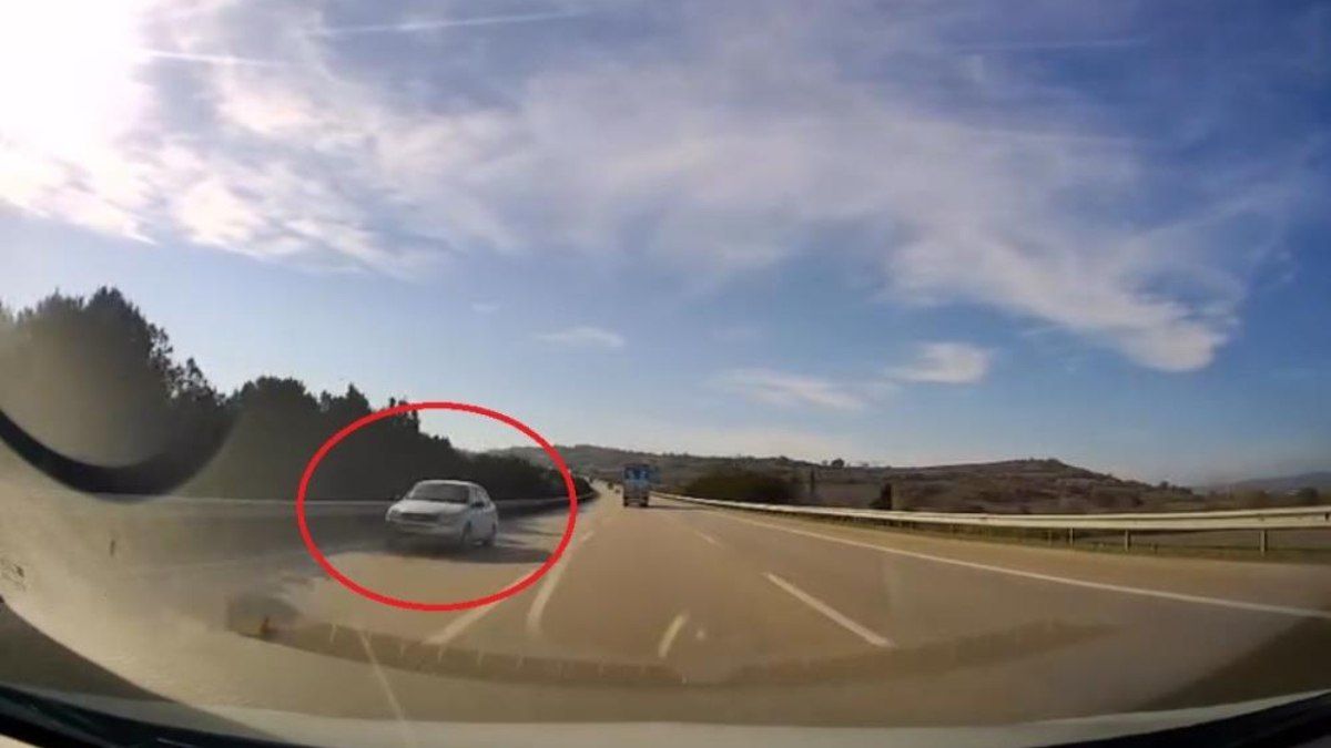 En sol şeritte ters yönden yaklaşık 150 kilometre hızla gelen bir otomobil sürücüsü, görenleri dehşete düşürdü.