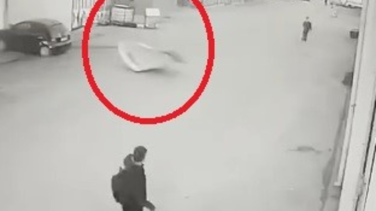 Kentte şiddetli lodosta okula gitmeye çalışan bir çocuk, saniyelerle yaralanmaktan kurtuldu.