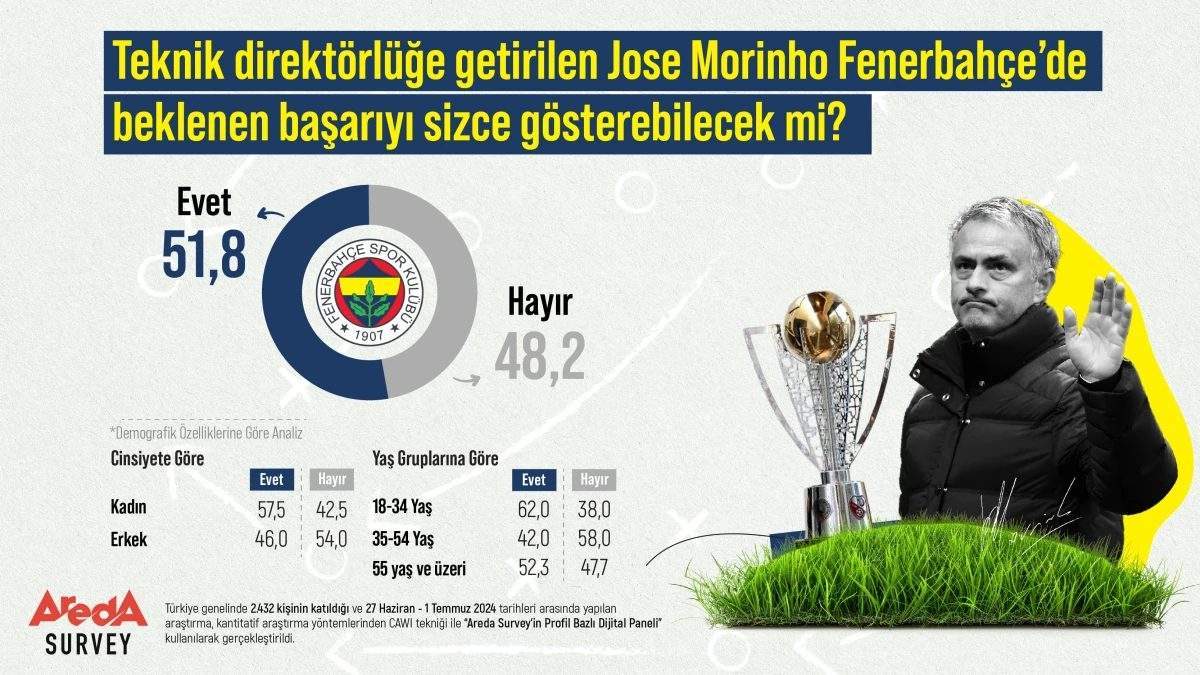 Araştırmaya nazaran iştirakçilerin yüzde 51,8’i Mourinho’nun Fenerbahçe’de başarılı olacağına inanıyor