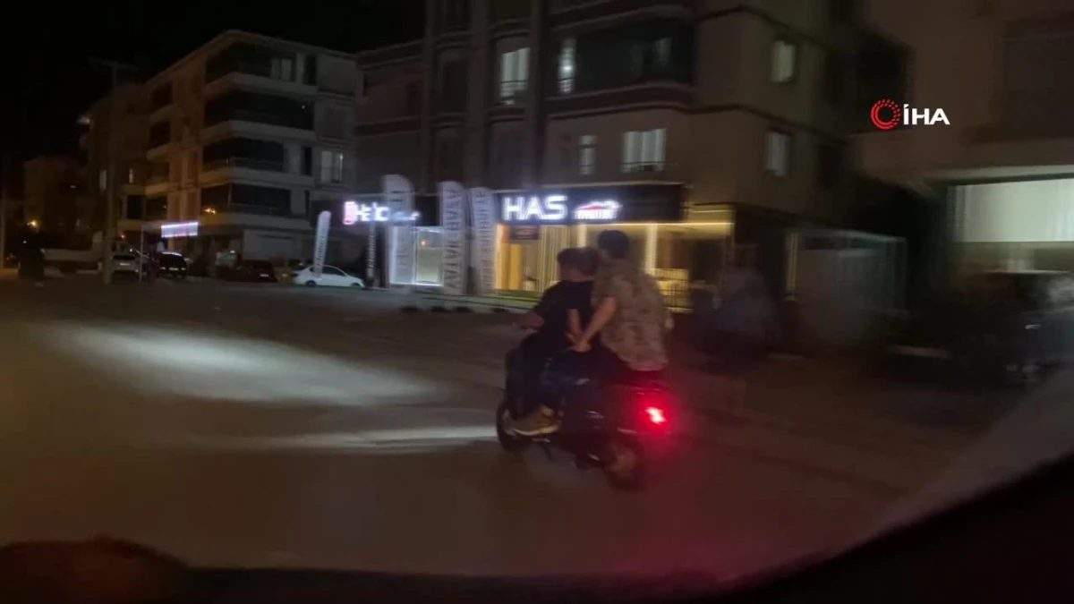 Aksaray'da 2'si çocuk 3 kişinin sıkışarak güçlükle bindiği ve çocuğun kullandığı tehlikeli motosiklet yolculuğu kameraya yansıdı. Plakası olmayan küçük motosiklete…