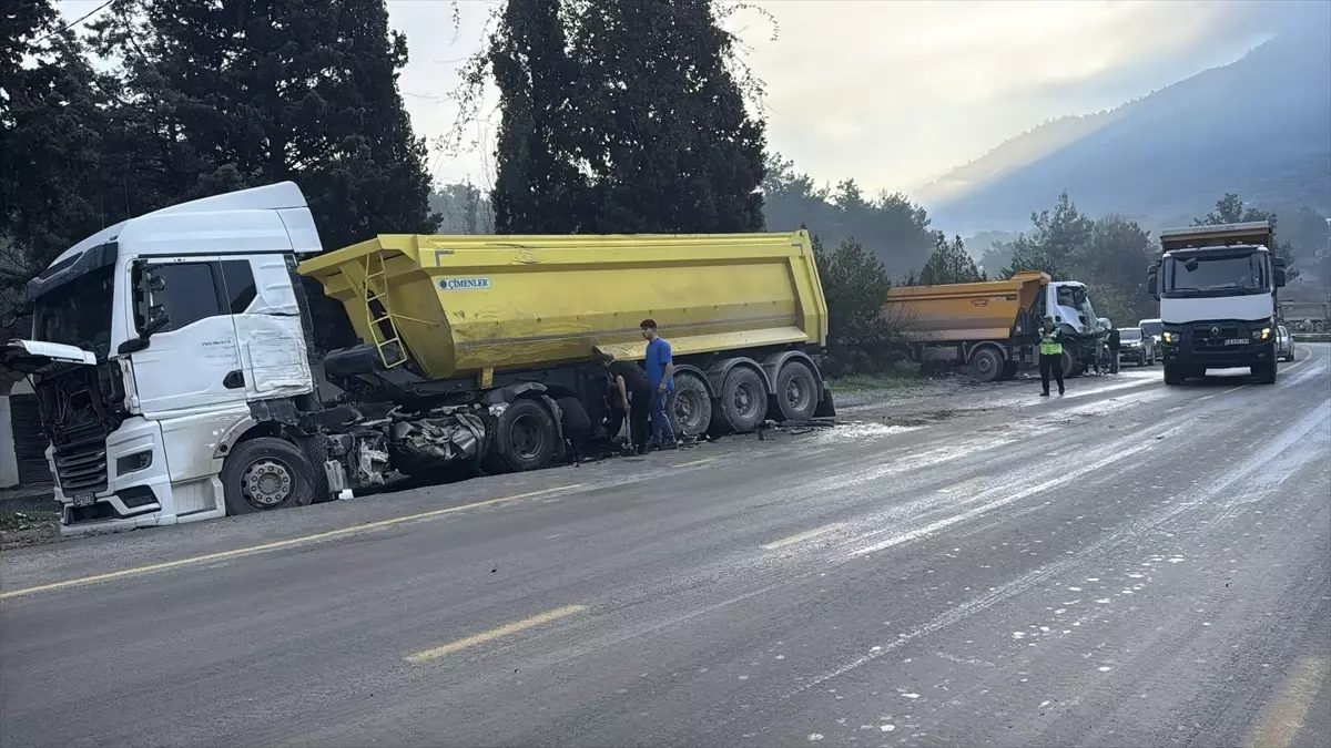 Bodrum'da iki hafriyat kamyonunun çarpışması sonucu bir kişi ağır yaralandı ve hastaneye kaldırıldı.