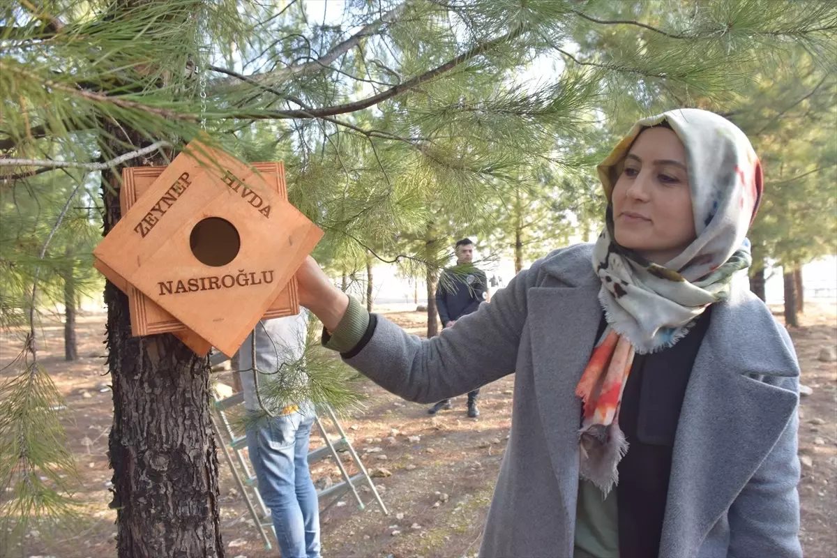 Atık ahşap malzemeden yapılan kuş yuvaları, Batman'daki hatıra ormanına asıldı.