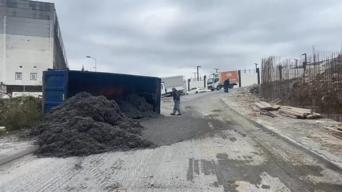 Esenyurt’ta Talaş Yüklü Kamyon Devrildi